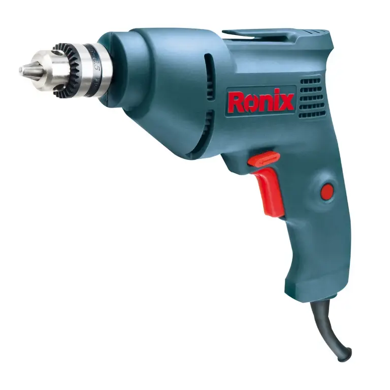 دریل برقی 6,5 میلیمتری آچاری 2106 رونیکس، با موتور قدرتمند 350 واتی ساخته شده و متشکل از آرمیچر و بالشتکهای صنعتی با بالاترین کیفیت سیمپیچی است. سه نظام این دریل، آچاری است و دستگاه همراه با آچار سهنظام ارائه میشود. این سه نظام میتواند متههایی به قطر 6,5 میلیمتر را در خود نگه دارد. سرعت این دریل برقی در حالت آزاد در محدوده 3600-0 دور در دقیقه بوده و برای سوراخکاری سطوح مختلف مناسب است. وجود کلید ضد غبار دور متغیر با قابلیت راستگرد، چپگرد در دریل برقی 2106 رونیکس، مانع از استهلاک زودرس آن میشود. در بخش شرح جزئیات محصول، دریل برقی 6,5 میلیمتری آچاری 350 وات 3600 دور رونیکس بیشتر بررسی شده است.