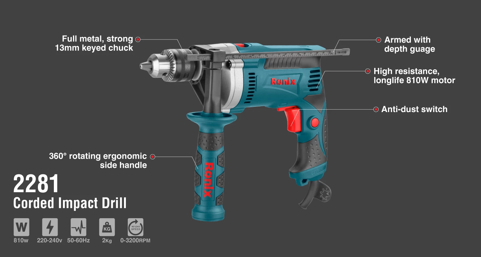 دریل چکشی برقی نیم تنه فلزی 810 وات2281