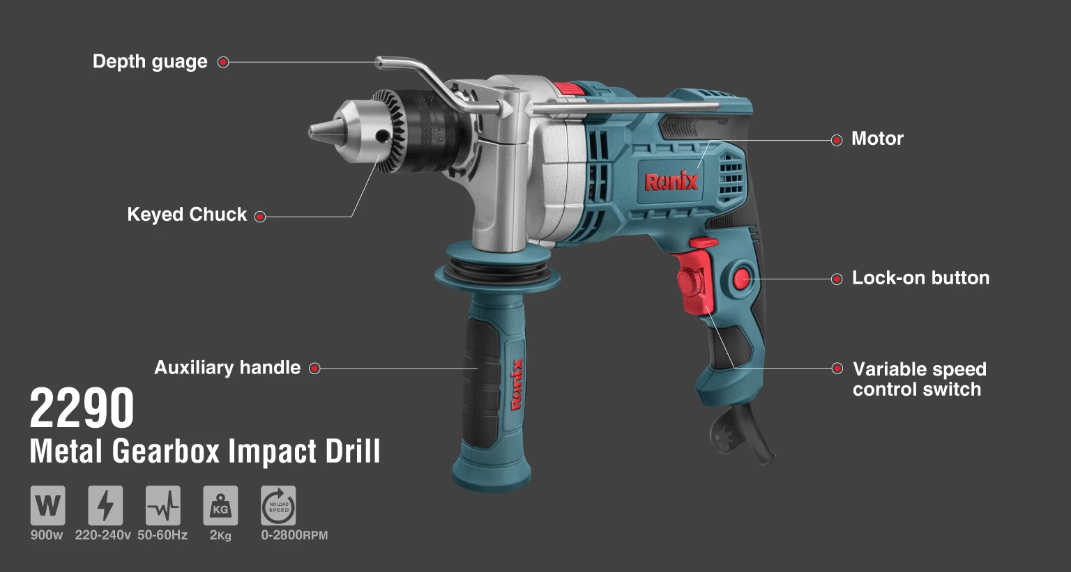 دریل چکشی نیمتنه فلزی 2290 رونیکس، انتخابی مطمئن، حرفهای و بیرقیب در کاربردهای مختلف است. این دستگاه، مجهز به موتور کارآمد و قدرتمند 900 وات است و با طراحی مهندسی و دوام بالا، عملکرد فوقالعادهای را در سختترین مواد و مصالح از خود نشان میدهد. این موتور فوق صنعتی، قادر است سرعتی بالغ بر 2800 دور بر دقیقه را ایجاد کند. سهنظام آچاری 13 میلیمتری این دریل، تمامفلزی و بسیار مستحکم است و بهترین کارایی را به این دستگاه میبخشد. طراحی فوقالعاده زیبا و ارگونومیک بدنه، از مهمترین ویژگیهایی است که دریل چکشی 2290 رونیکس را از سایر رقبای خود متمایز کرده و محبوبیت این ابزار را برای کاربران صنایع مختلف دوچندان میکند. برای آشنایی بیشتر با دریل چکشی نیمتنه فلزی 13 میلیمتری آچاری 900 وات رونیکس مدل 2290، بخش شرح جزئیات محصول را مطالعه کنید.