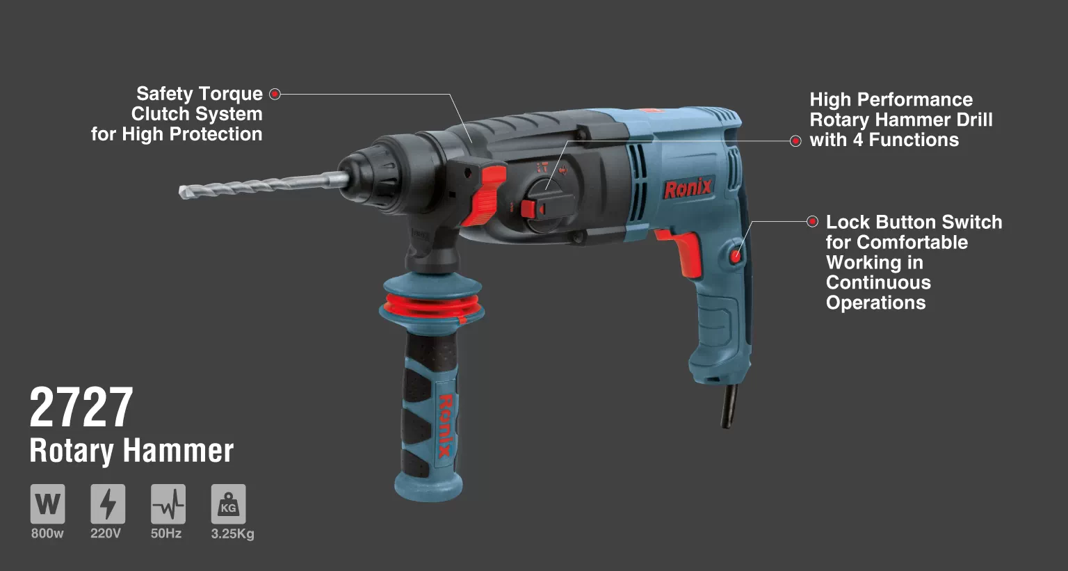 سه قابلیت عملکرد متفاوت (سوراخ کاری، سوراخ کاری چکشی و تخریب)