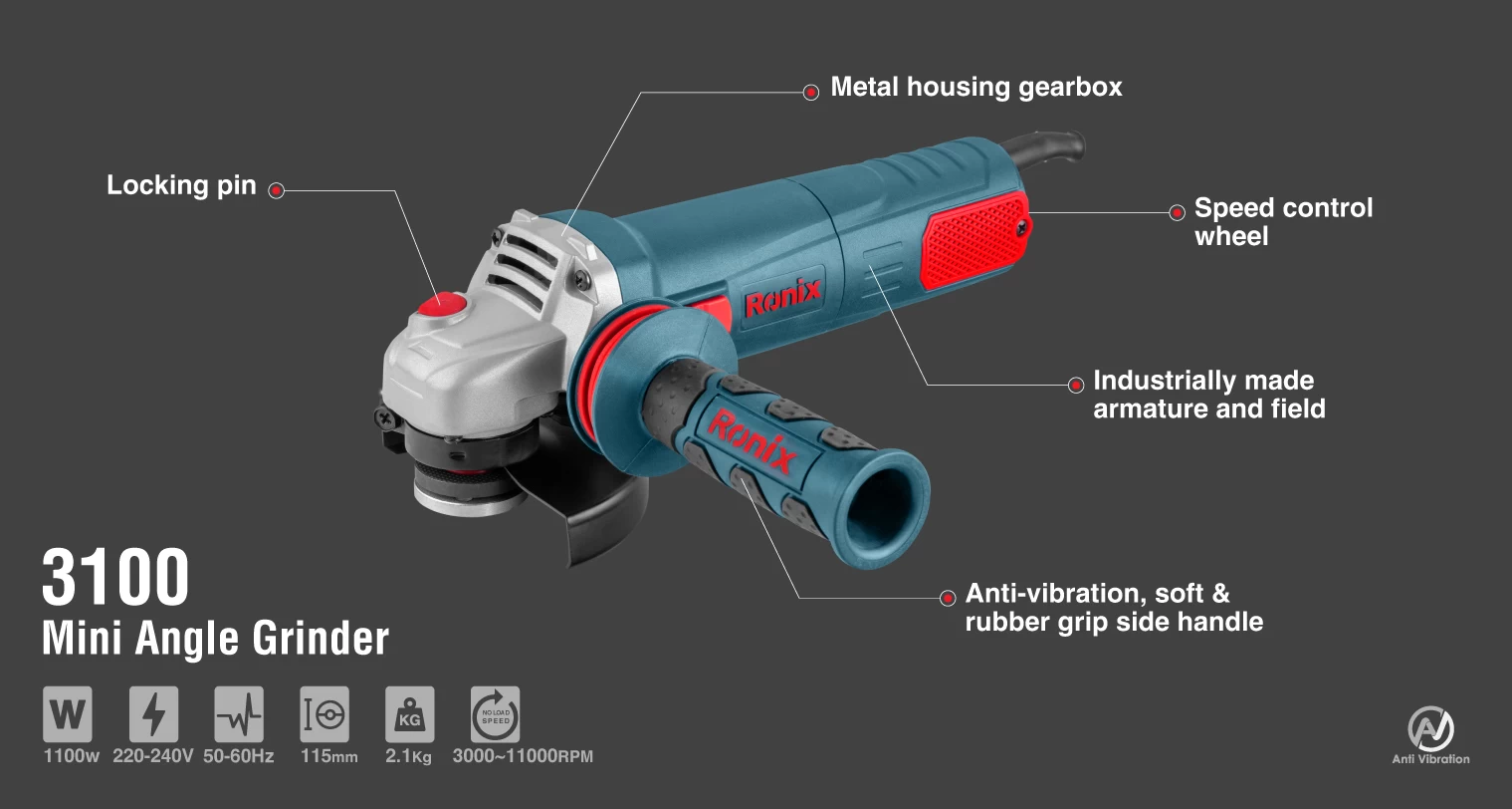 فاکتورهایی مانند اندازه صفحه برش، توان موتور، سرعت، امکانات ایمنی، ابعاد دستگاه و ... در انتخاب مینیفرز موثر هستند. مینیفرز برقی 3100 رونیکس، مجهز به موتور قدرتمند 1100 واتی بوده و در حالت آزاد، سرعتی در محدوده 11000-3000 دور بر دقیقه را ایجاد میکند. قطر صفحه مورد استفاده در این مینی فرز، 115 میلیمتر است.میتوان با وجود دیمر تنظیم سرعت، از این ابزار برای انجام فعالیتهایی مانند کفسابی، برش مواد مختلف، صافکردن بیرونزدگی و تیزکردن سایر ابزارها استفاده کرد.سیستم گردش هوای پیشرفته، بدنه ارگونومیک، دسته آنتی شوک و کلیدهای ضد غبار، از دیگر ویژگیهای متمایز این مینیفرز قدرتمند و حرفهای هستند.
