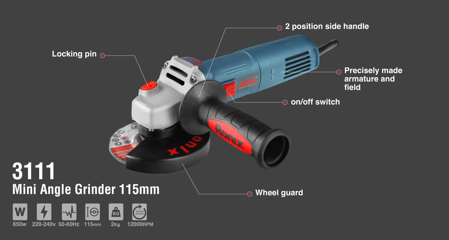 مینی فرز برقی رونیکس مدل 3111 با توان 850 وات و صفحه برش 115 میلیمتری، ابزاری قدرتمند و حرفهای برای انجام انواع برش و سنگزنی است. این دستگاه با موتور با حداکثر سرعت 12000 دور بر دقیقه، عملکردی سریع و دقیق در برشکاری ارائه میدهد. سیستم گردش هوای پیشرفته این مینیفرز، باعث خنک نگهداشتن موتور در هنگام کار و جلوگیری از آسیب به قطعات داخلی ابزار میشود. دسته جانبی مینیفرز برقی رونیکس، به صورت ارگونومیک طراحی شده و باعث راحتی کاربر در حین استفاده طولانی مدت میشود.