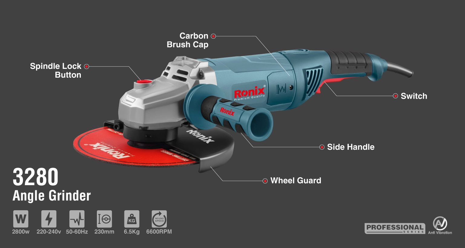 رونیکس مدلهای متنوع و باکیفیت فرز سنگبری صنعتی را تولید میکند تا پاسخگوی نیازهای صنعتگران باشد. فرز سوپر سنگبری 3280 رونیکس، تنها یکی از نمونههای این مجموعه کامل، با موتور 2800 وات صنعتی، بدنه مستحکم و ارگونومیک، دسته اصلی گردان، بلبرینگهای ضد غبار و دور بالا و سیستم پیشرفته گردش هوای داخلی انتخابی حرفهای در کاربردهای پرفشار صنعتی است. موتور قدرتمند این محصول، متشکل از آرمیچر و بالشتکهای صنعتی است که تحت استاندارد CE اروپا تولید شدهاند. طراحی منحصربهفرد در قسمت پروانهای آرمیچر این فرز موجب بهبود گردش هوای داخل دستگاه و افزایش عمر مفید موتور میشود. کلید ضد غبار این محصول نیز مطابق با استاندارد TUV طراحی شده است.