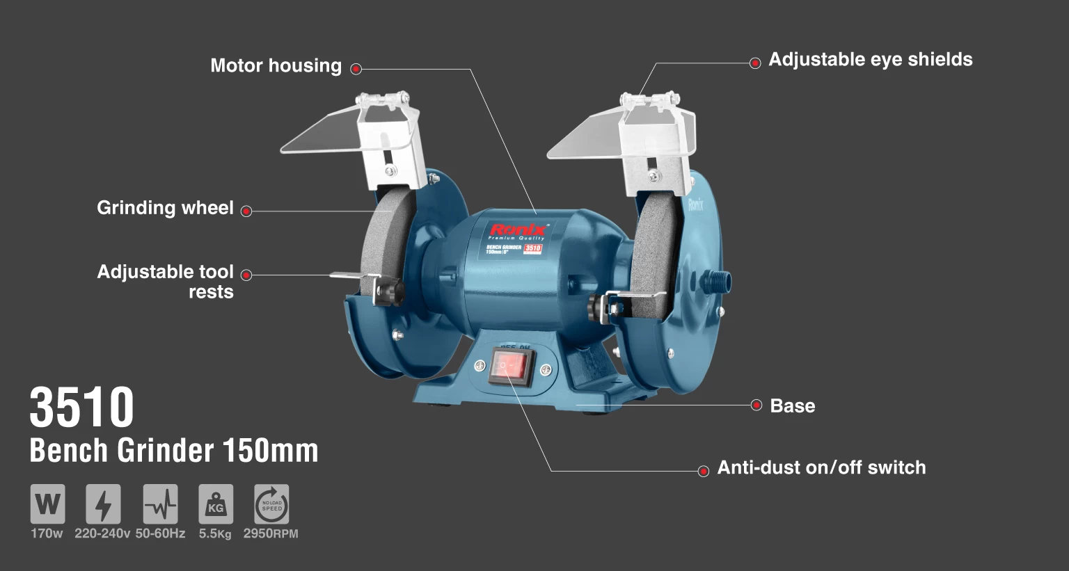 از چرخ سنباده میتوانید به عنوان یک ابزار چندکاره در مجموعه ابزارآلات خود برای تیزکردن ابزارها، پولیش، فرمدهی و ... استفاده کنید. این ابزار با قدرت و توان مناسب خود، همراه همیشگی شما در کارگاههای کوچک آهنگری یا کارخانههای بزرگ است.محصولی که در ادامه به معرفی و بررسی جزئیات آن میپردازیم، چرخ سنباده 150 میلیمتری و 220 وات رونیکس مدل 3510 است. این دستگاه با دو صفحه سنباده در دو طرف و ساختاری قدرتمند، برای محیطهای کاری صنعتی مناسب است. این چرخ سنباده مجهز به سنگ سنباده زبر و نرم بوده و میتوانید از آن برای کاربریهای متفاوت مانند پلیسهگیری، پرداختکاری و ... استفاده کنید.برای آشنایی بیشتر با این محصول، بخش شرح جزئیات را بخوانید.