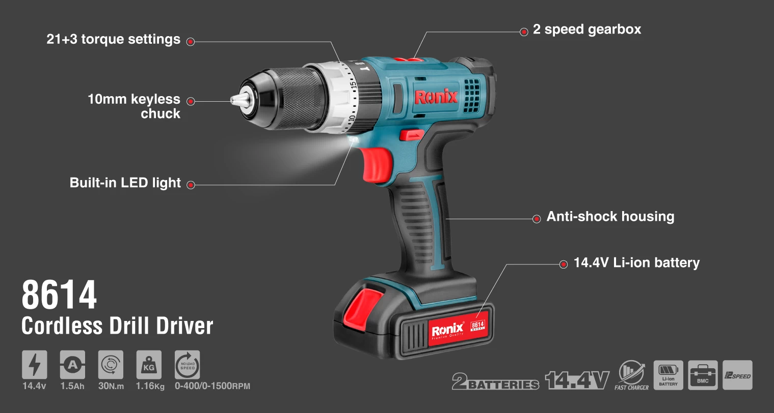 دریل پیچ گوشتی چکشی شارژی دو سرعته 14 ولت8614