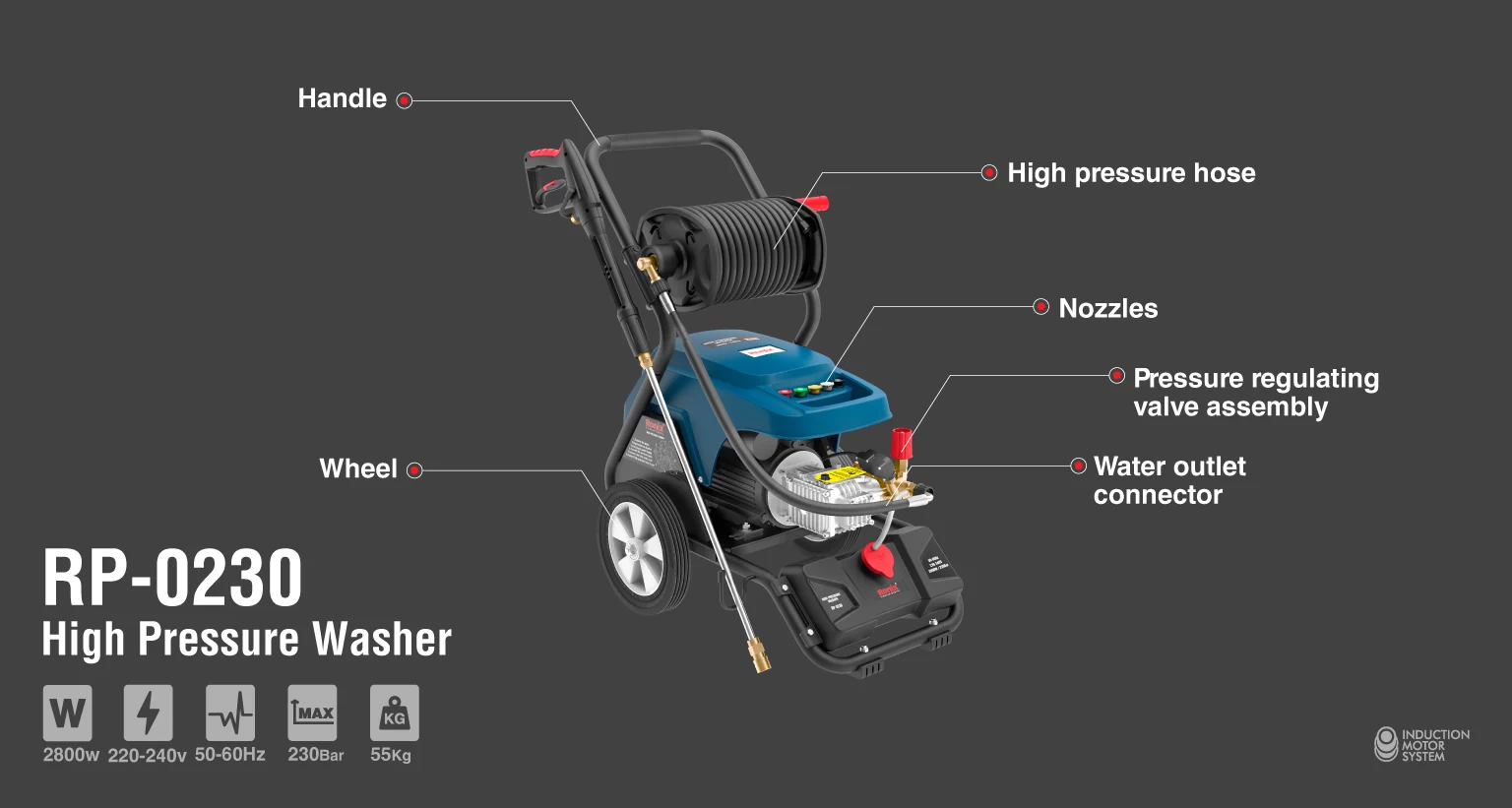 - موتور القایی 2800 واتی با کارایی و قدرت بالا که حداکثر فشار آب را برای تمیزکردن فراهم می آورد.